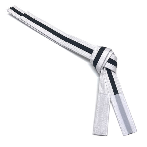 Hook and Loop Cub Velcro Belts for karate, taekwondo and jiu jitsu. Lets you keep your belt tied when taking it off. The velcro is located on the back end of the belt for a discreet non-invasive way to make your classes run smoother. Tie your students' belts one time and let the velcro do the rest.